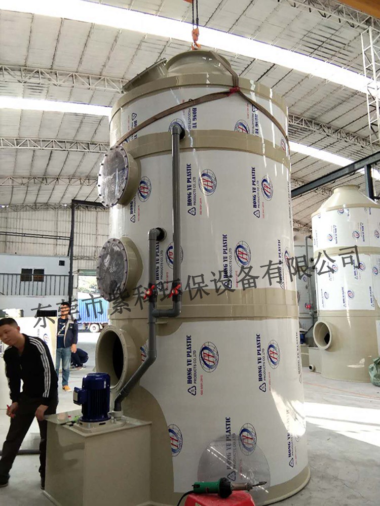 pp废气除尘净化塔,pp酸雾喷淋装置分单塔体和双塔体。采用圆形塔体,用法兰分段联接而成。具体由贮液箱、塔体、进风段、喷淋层、填料层、旋流除雾层、观检窗、出风口等组成。该酸雾净化塔是圆形塔体,用聚丙烯、聚氯乙烯等材料由法兰连接分段制作而成。具体结构由进风段、压力室、鼓泡贮液箱、两级喷淋段、旋流板、出风锥帽、风管、风道、液体流量计、液位计、压力检测口、酸缄度仪等组成。酸雾净化塔它具有效力高、耐腐蚀性强,高强度、低噪声、耗电省,拆装维修方便。